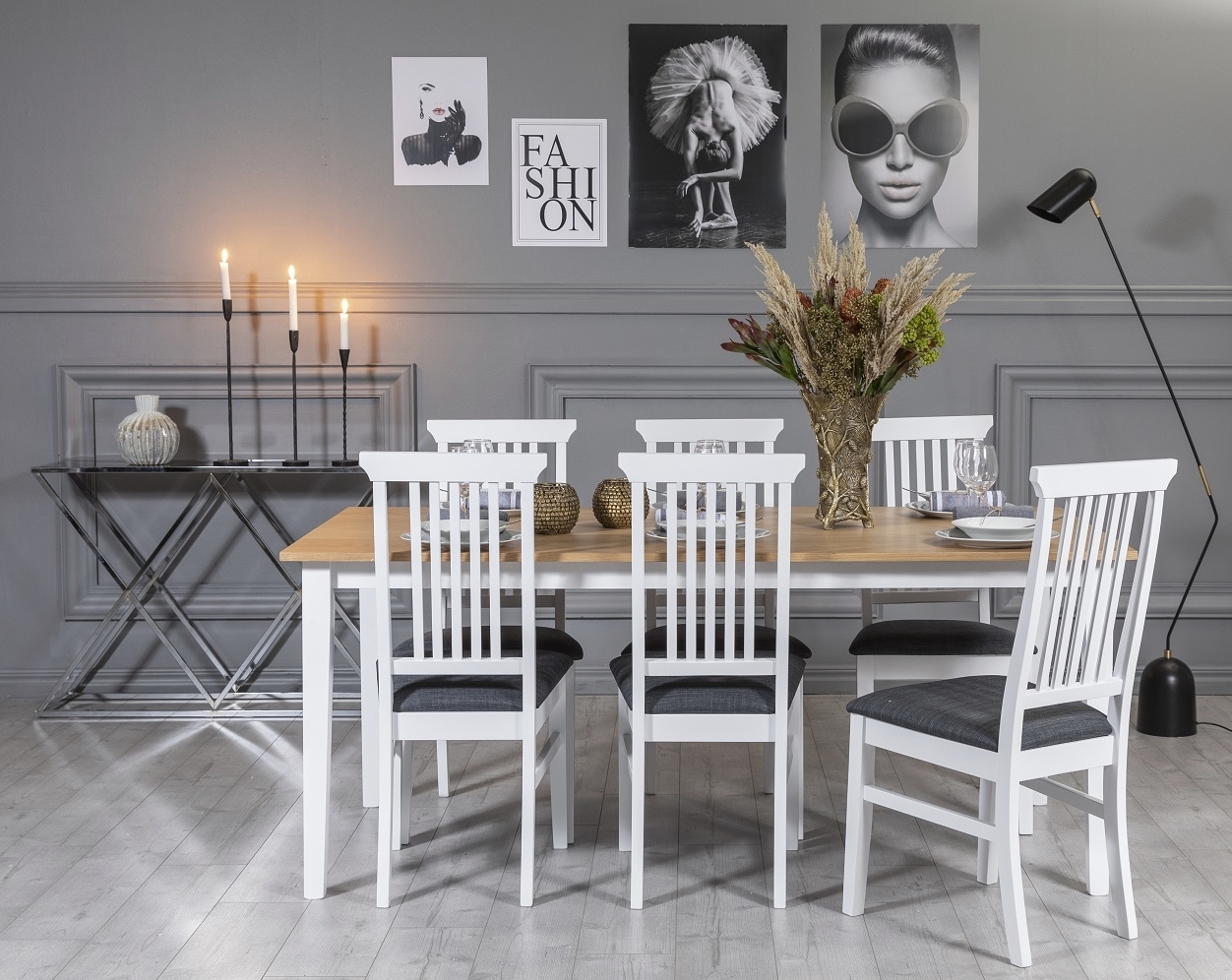 Fårö spisegruppe: Bord 180 cm inkludert 6 Måsö stoler - Hvit/Eik