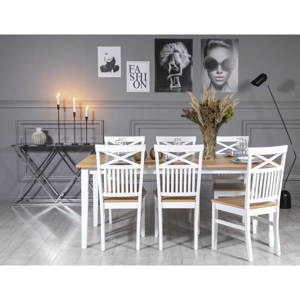 Fårö spisegruppe: Bord 180 cm inkludert 6 stk Fårö stoler med kryss - Eik/hvit