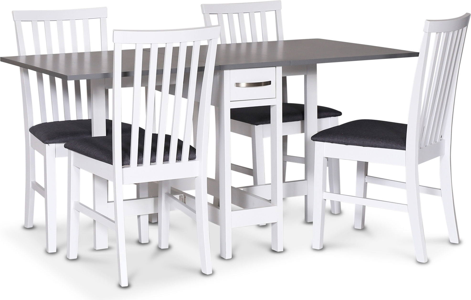Fårö spisegruppe; Fårö klaffbord i hvit/grå med 4 Alice-stoler