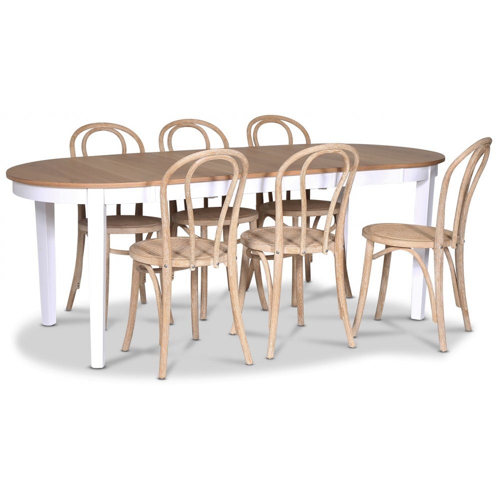 Fårö spisegruppe; Ovalt spisebord 160-210 cm - Hvit / Oljet eik med 6 stk Danderyd No.18 spisestoler whitewash