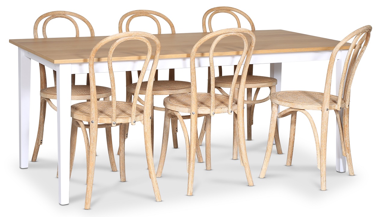 Fårö spisegruppe; spisebord 180x90 cm - Hvit / oljet eik med 6 stk Danderyd No.18 stoler whitewash