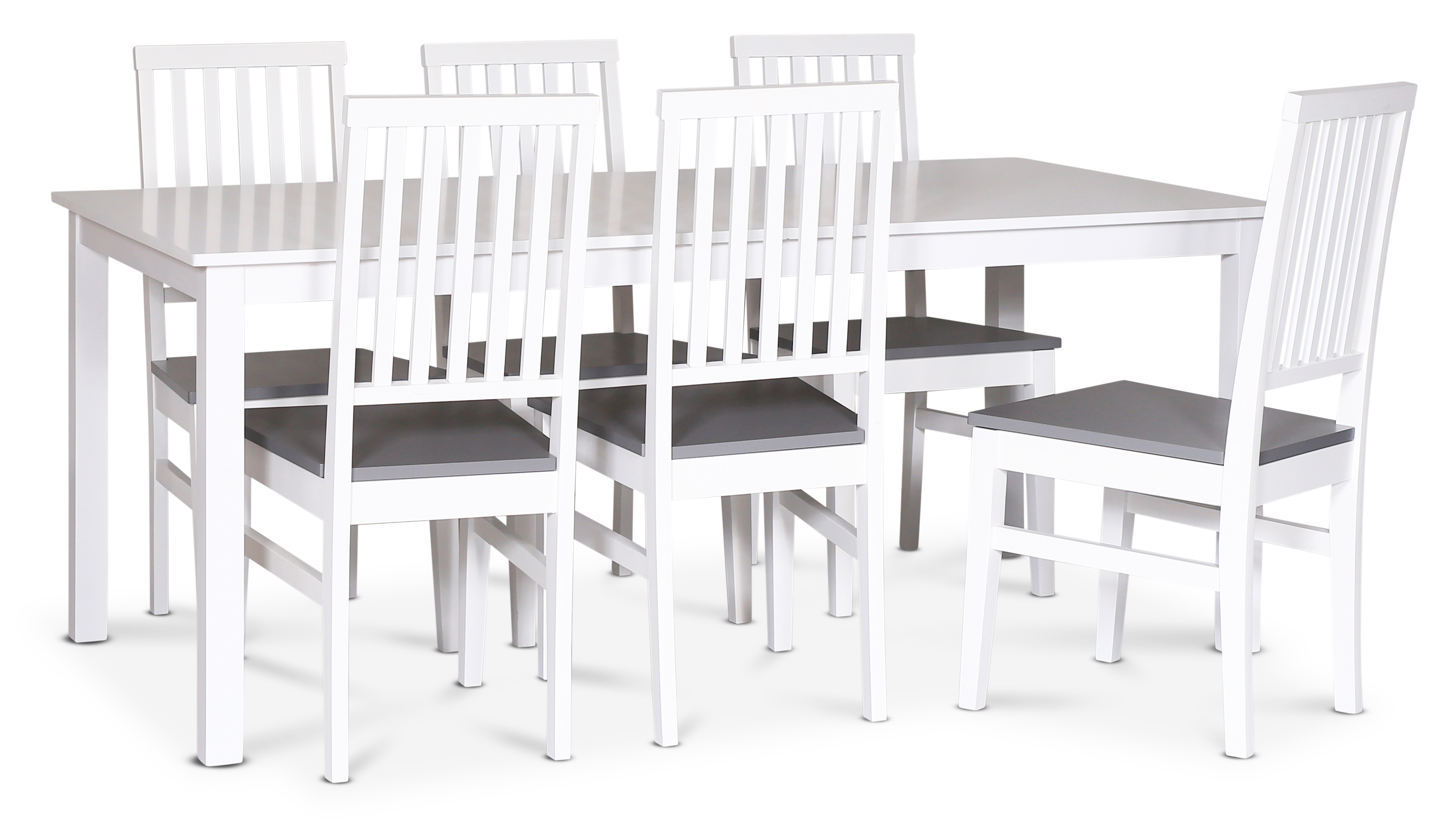 Fårö spisegruppe i klassisk design. Stilig spisebord, 180x90 cm med hvitlakkerte ben og bordplate
