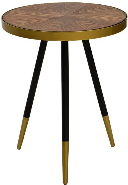 Retro designet lampebord. Bordplaten er laget i MDF med et nydelig valnøttsmønster og messingfarget metallramme. Beinene er av svartmalt tre med messingfarget metall på endene som en ekstra levende detalj. Bordet passer perfekt for eksempel ved siden av sofagruppen.