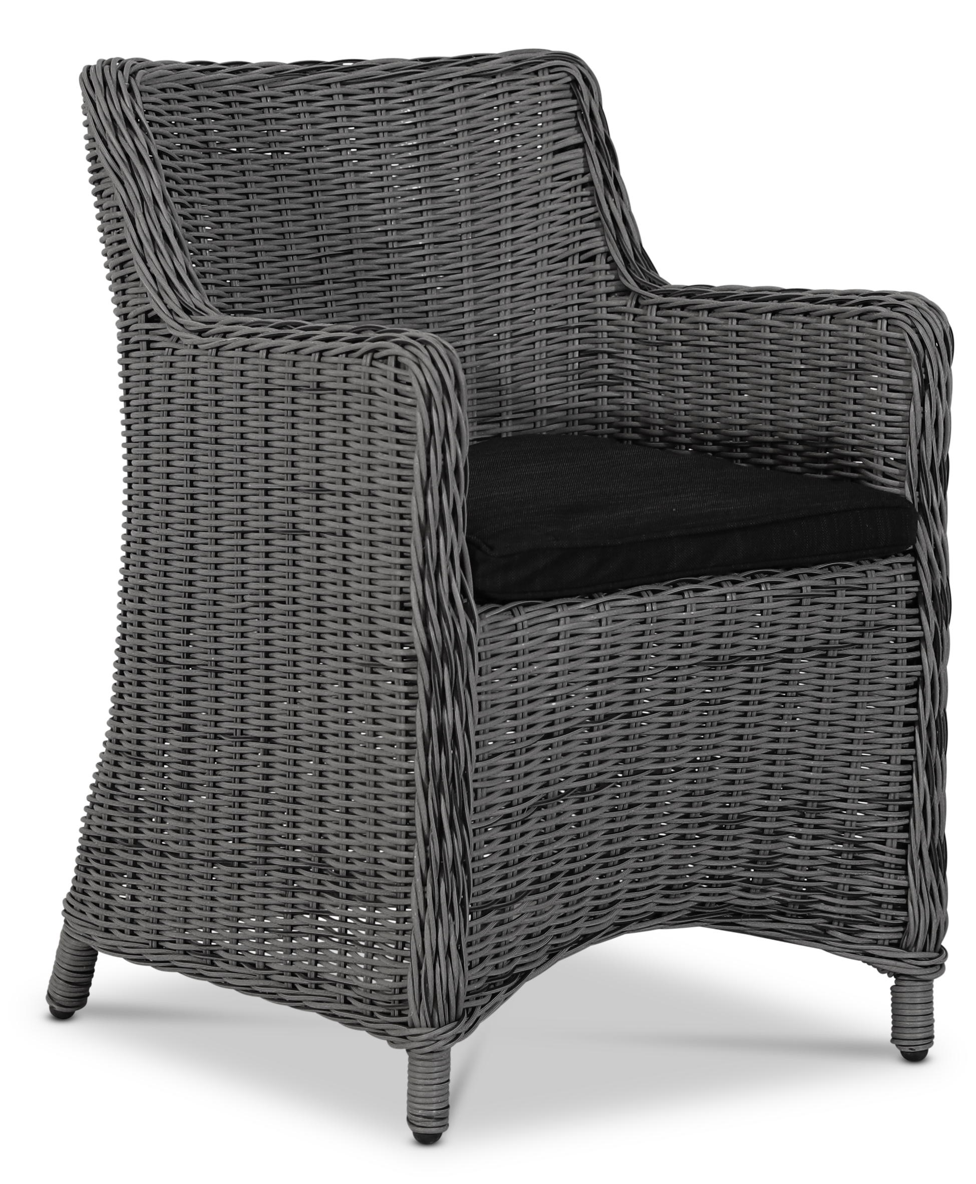 Lenestol i grå kunstrotting med grå pute, ramme av værbestandig aluminium.