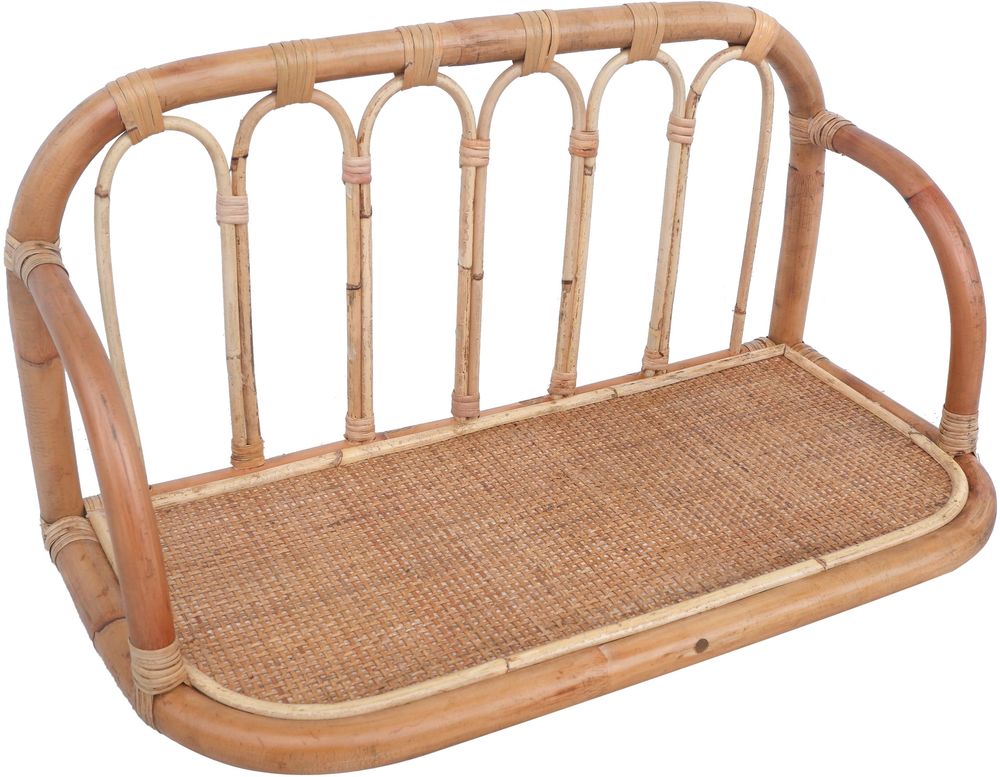 Vegghylle laget av slitesterk og holdbar rotting, bundet for en stabil konstruksjon. Denne vegghyllen er naturfarget, men er også tilgjengelig i Whitewash.