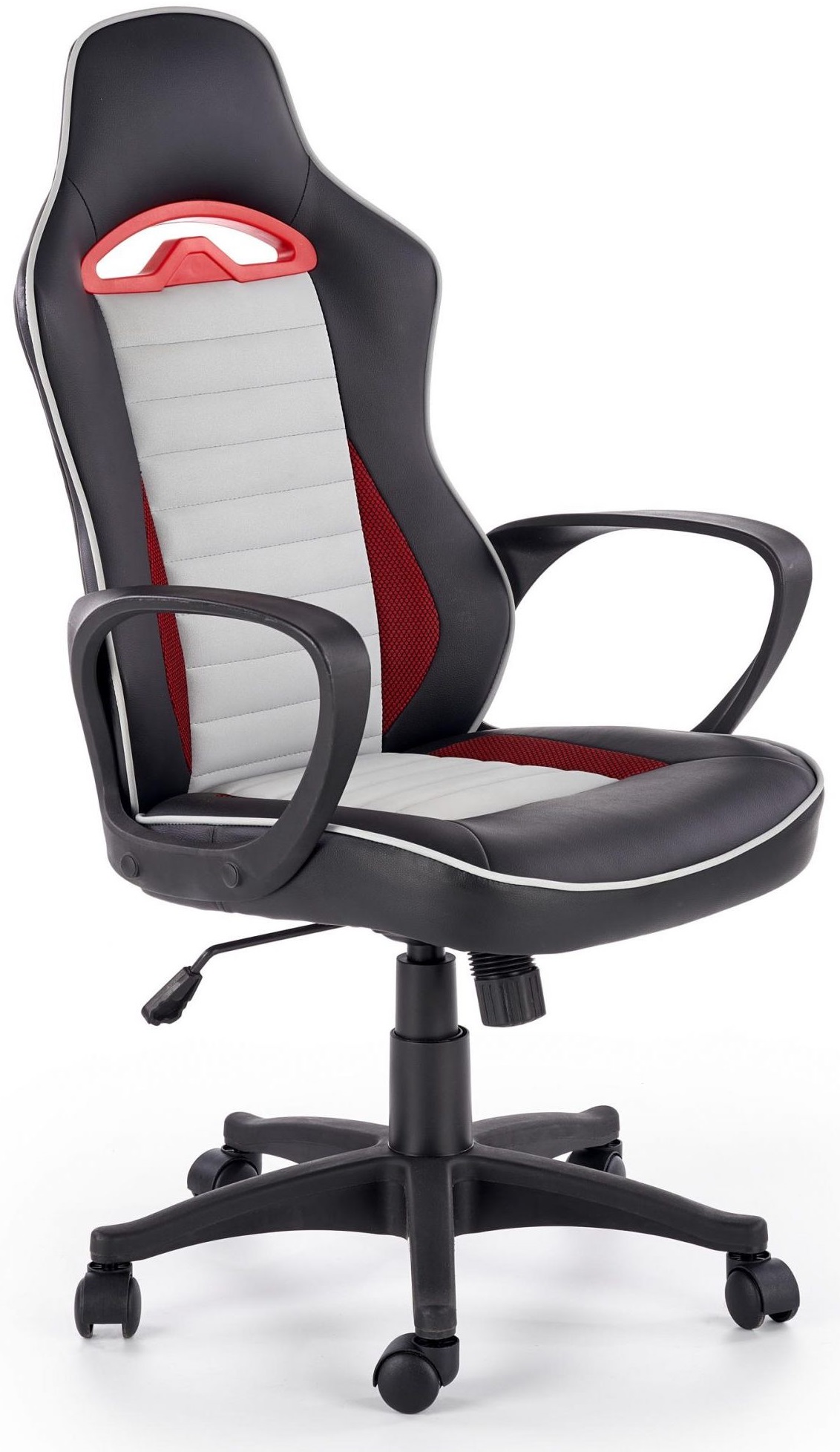 En fin kontorstol med et moderne design. Stolen er kledd med et veldig behagelig kunstskinn for maksimal komfort. Setet justere enkelt i høyde med hjelp av spaken under setet og stolen er lett å forflytte takket være hjulene på stjernefoten.