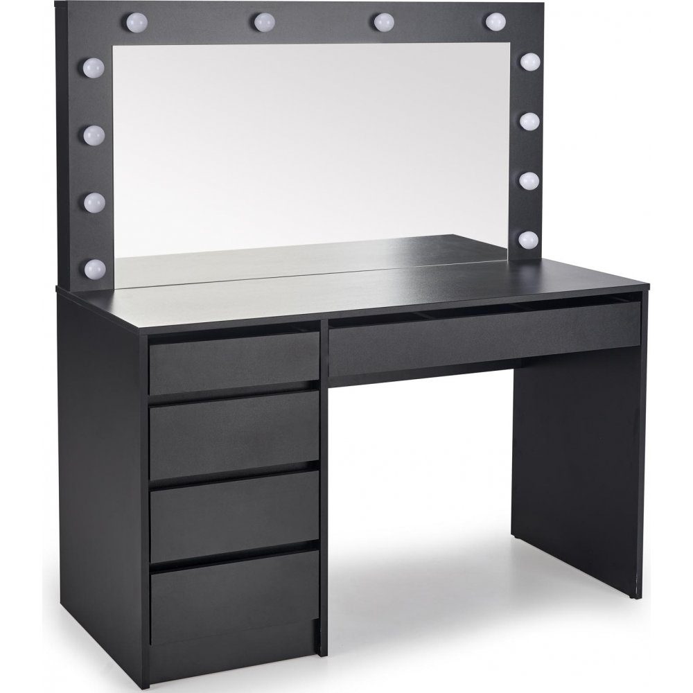 Svart sminkebord med belysning og oppbevaring - Facada