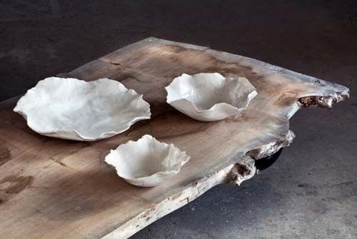 Håndlaget fat av hvit keramikk. Finnes i tre størrelser.
