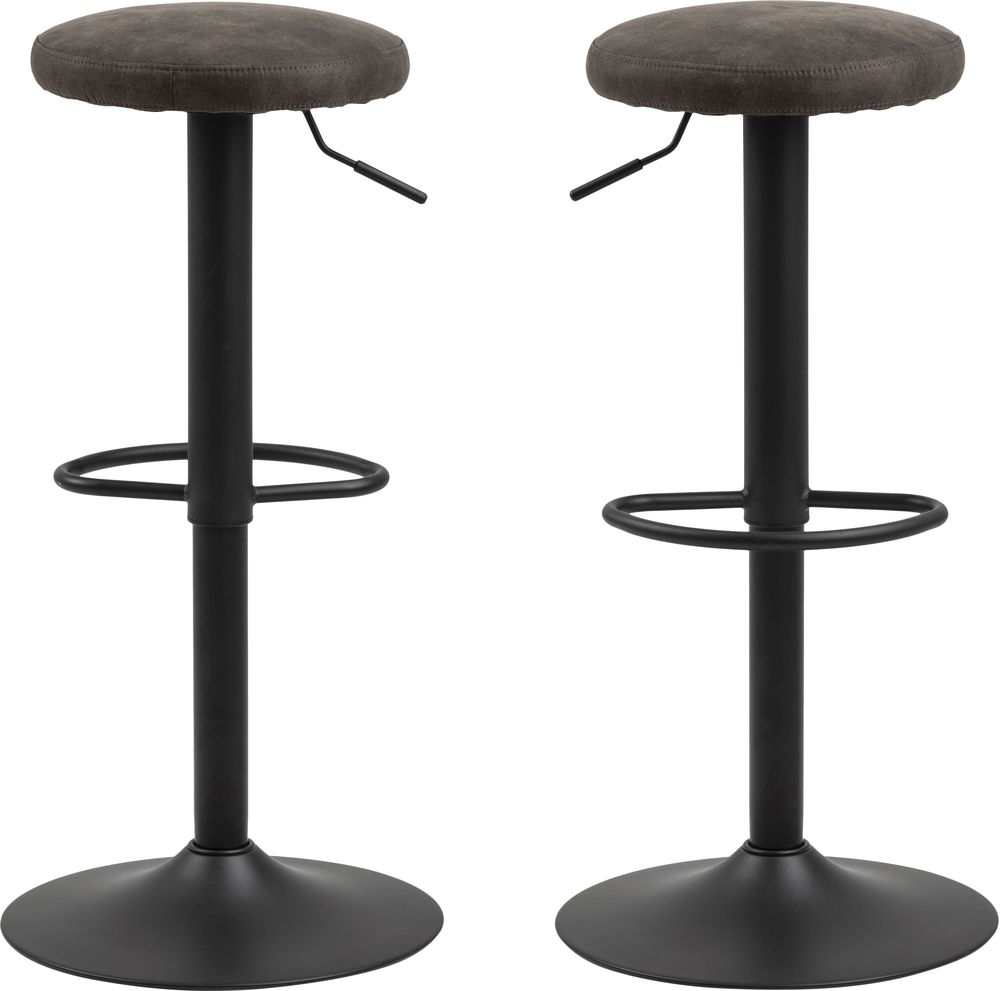 Barstol i sort pulverlakkert metall med setet kledd i et behagelig fløyelsstoff. Utstyrt med fotstøtte og justerbar høyde på setet.