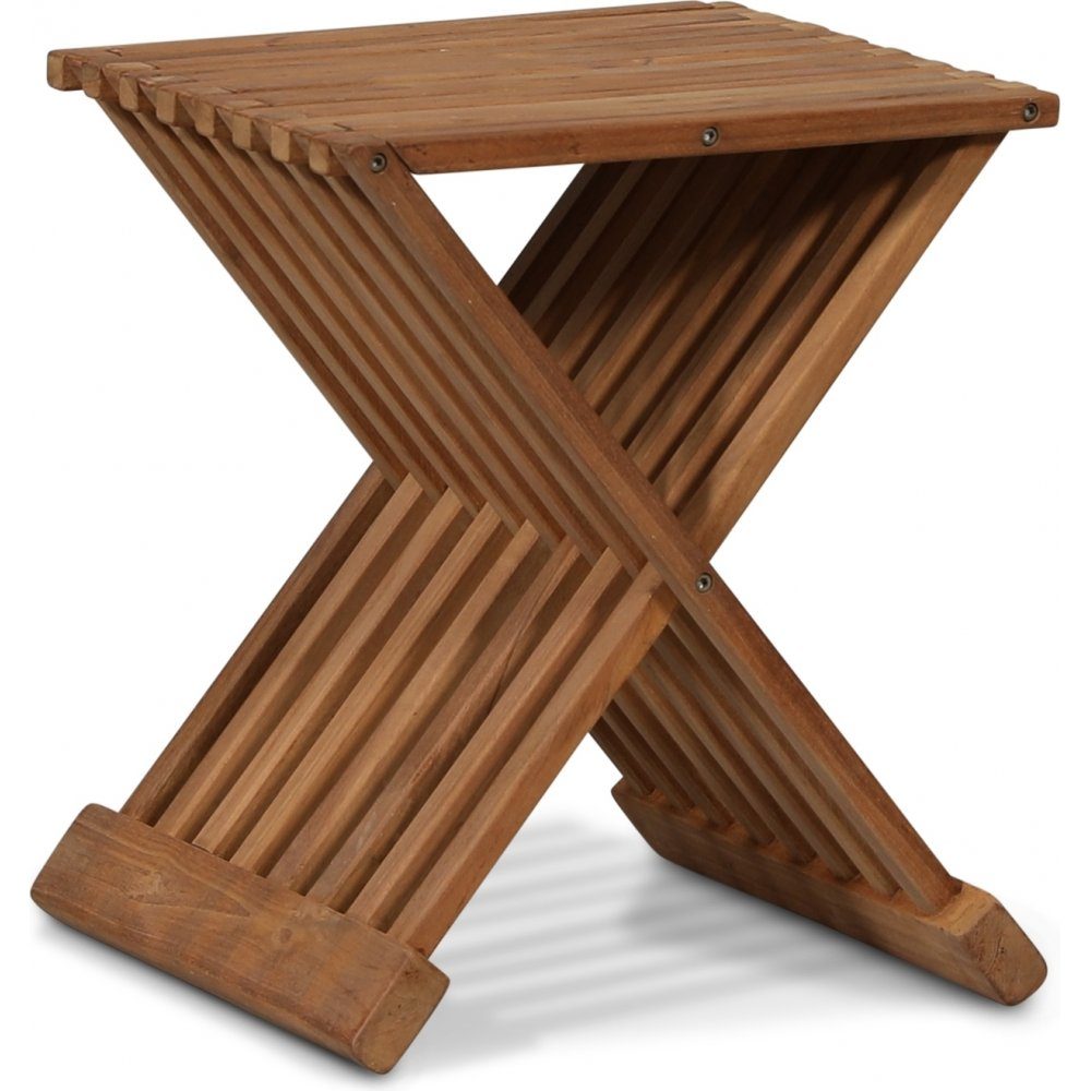 Fiona sammenleggbar pall i massiv ekte teak. Sammenleggbar for enkel oppbevaring. Kan også brukes som nattbord eller lampebord.