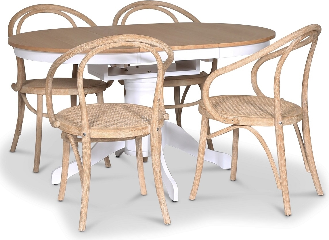 Fitchburg spisegruppe; Ovalt spisebord 106-141 cm - Hvit / Oljet eik med 4 stk Danderyd No.30 lenestoler whitewash