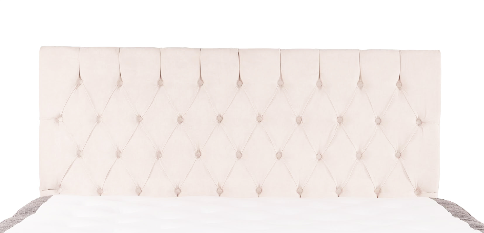 Fløyel Vegghengt Sengegavl er en handlagd gavl med et lyst stoff i fløyelsutførelse.