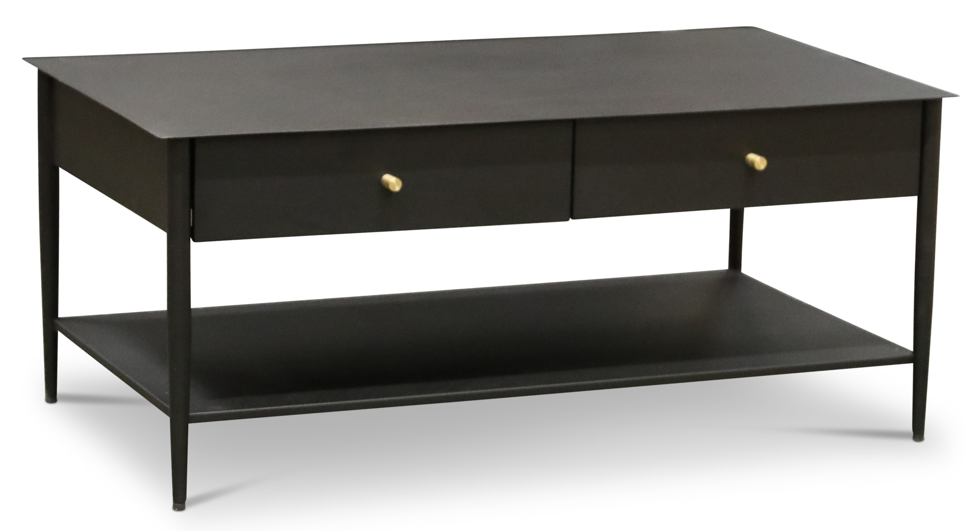 Flash salongbord med skuffer - Sort metall med messing knotter