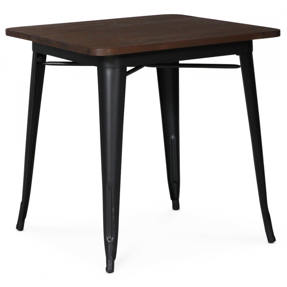 Vintage metallbord i matt svart metall med topplate i brunt vintage-tre. Klassisk restaurantbord som passer for både moderne- og vintage-stoler. Laget av aluminium.