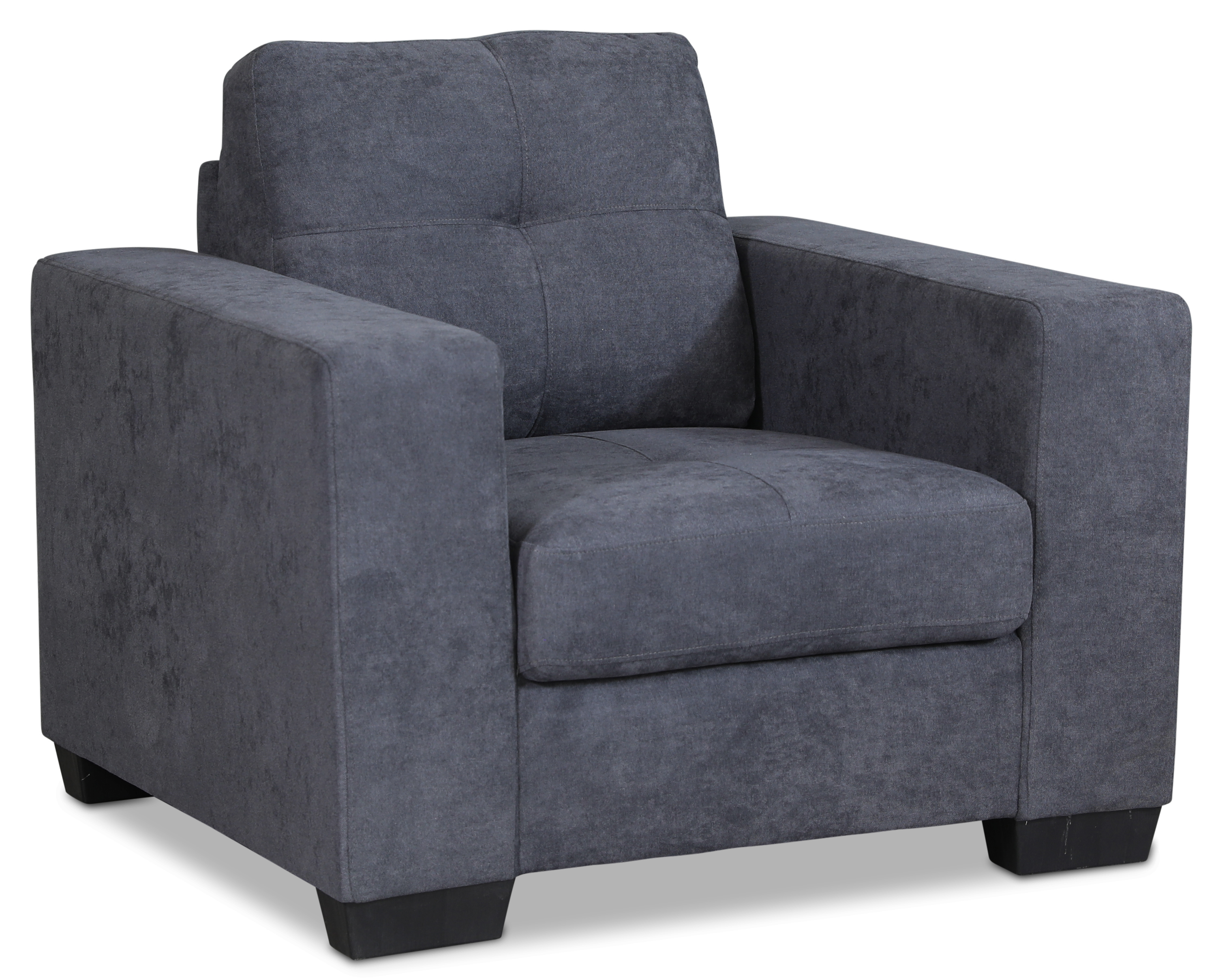 Robust lenestol med stilrene linjer og brede armlener. Lenestolen er kledd i et grått, mykt chenillestoff. Fast setepute som med kaldskum og fjæring for god komfort. Svarte ben.
