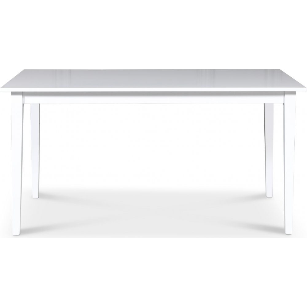 Stilrent spisebord med ramme i massivt hvitmalt heveatre, bordplate av hvit MDF. Også tilgjengelig som 150 cm.