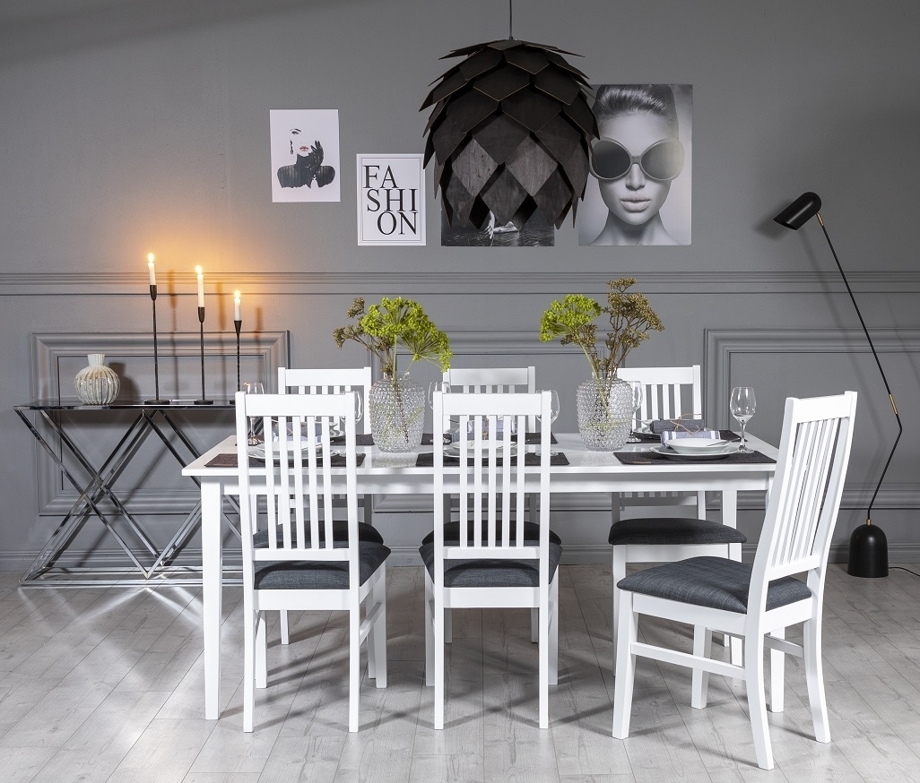 Gåsö spisegruppe 180 cm inkludert 6 stk Malö stoler - Hvit