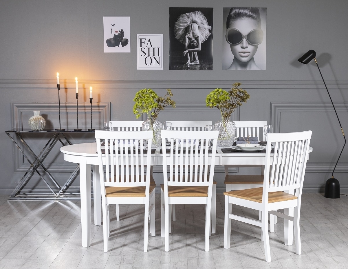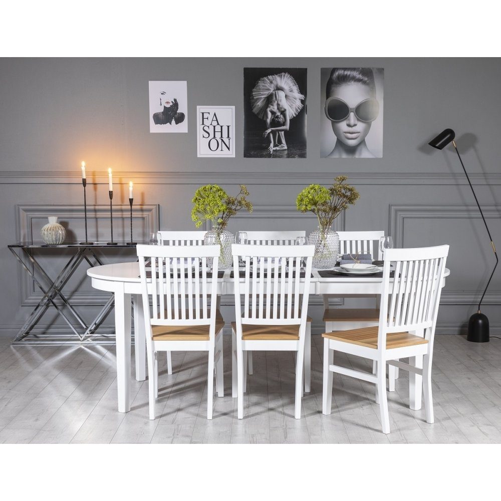 Gåsö spisegruppe: Bord 160/210 cm inkludert 6 Fårö stoler - Hvit/Eik