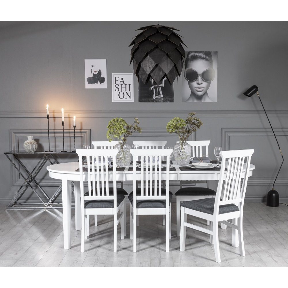 Gåsö spisegruppe ovalt utdragbart inkludert 6 stk Malö II stoler - Hvit
