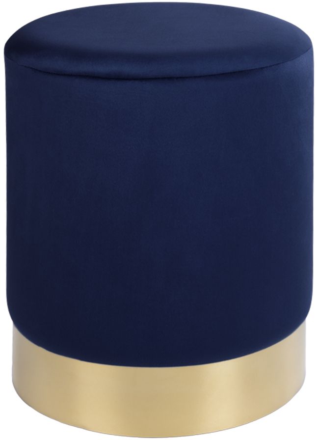 sittepuff i mørk blå velur med messingkant.