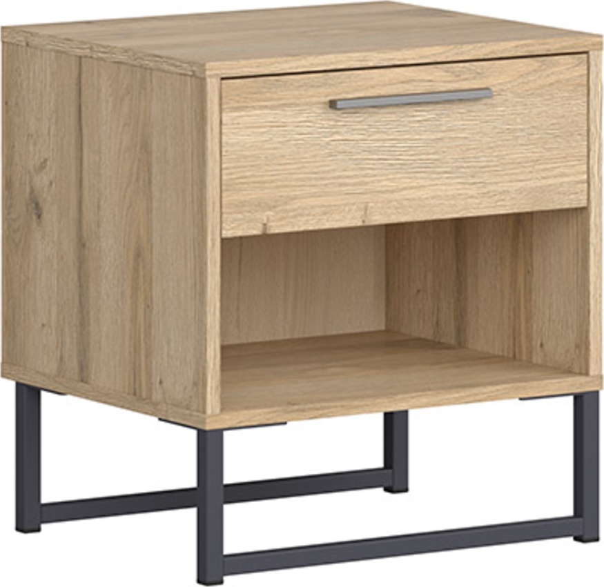 Nattbord laget av tre med metallunderstell.
