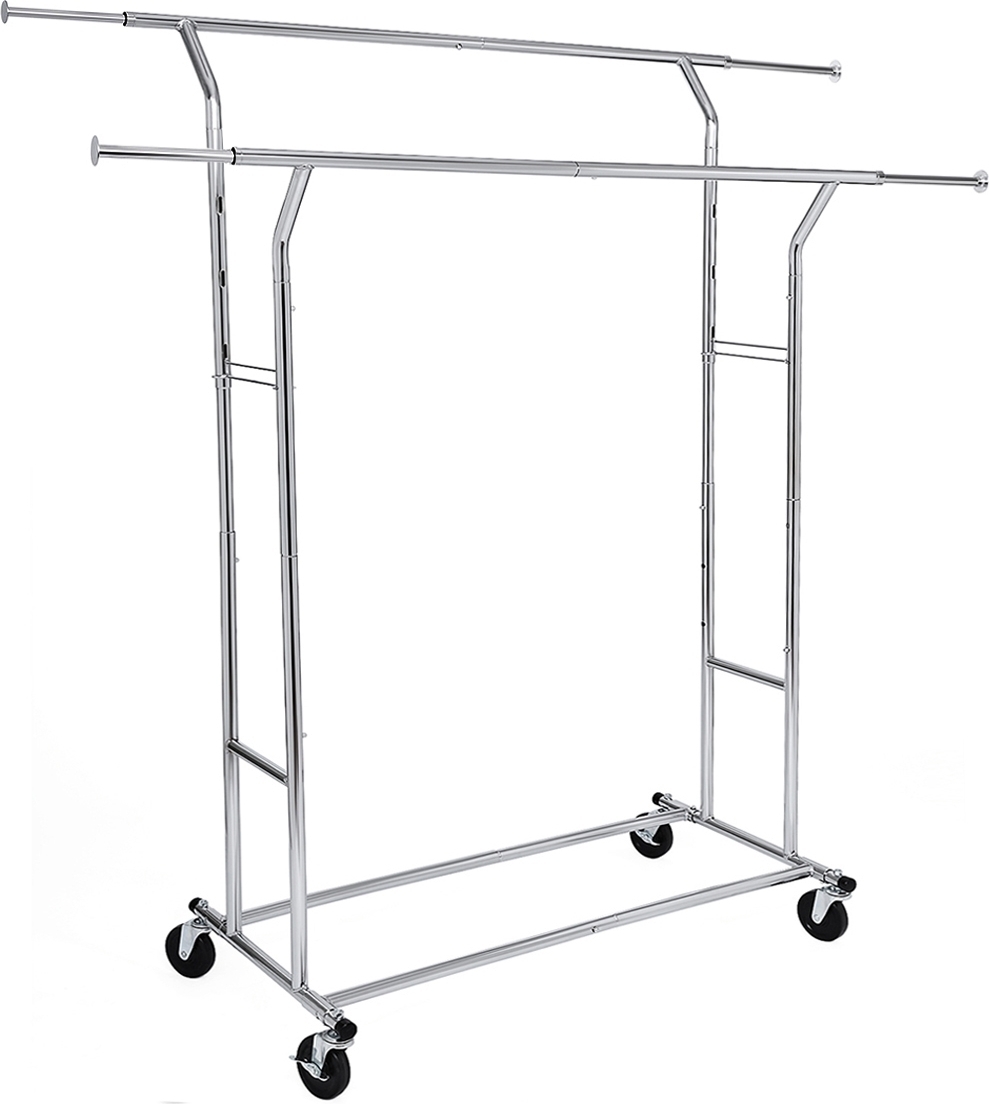Klesstativ i stål. 2 av de 4 hjulene er låsbare. Justerbar i høyde og bredde.