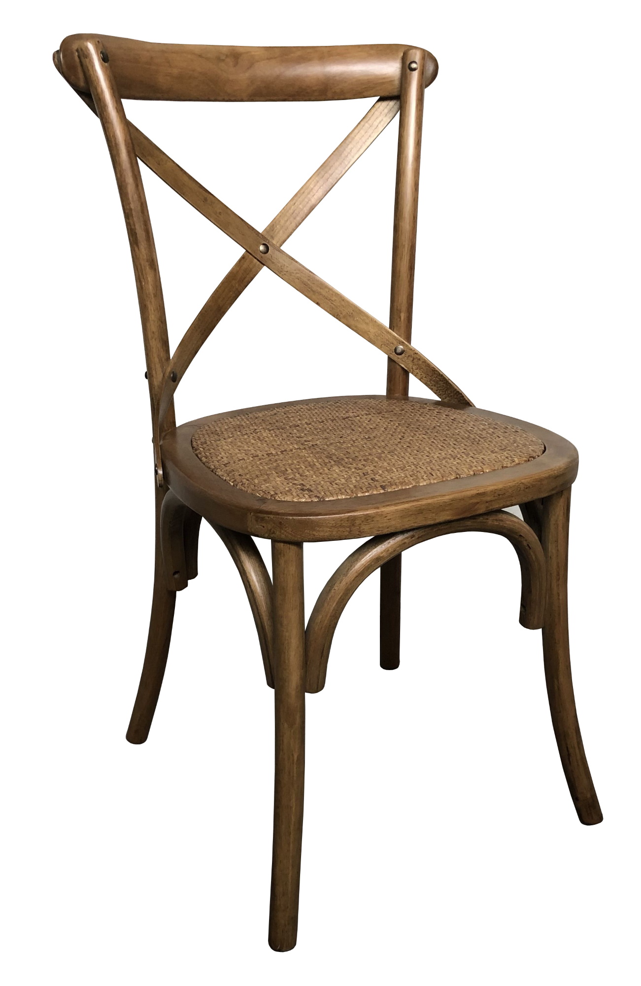 Gaston stol i vintage av massiv alm med rottingsete. Kryss i stolryggen, vakkert mønstret tre som komplement til rottingen.