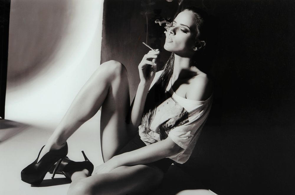 Glassbilde Woman with cigarette, svarthvit.