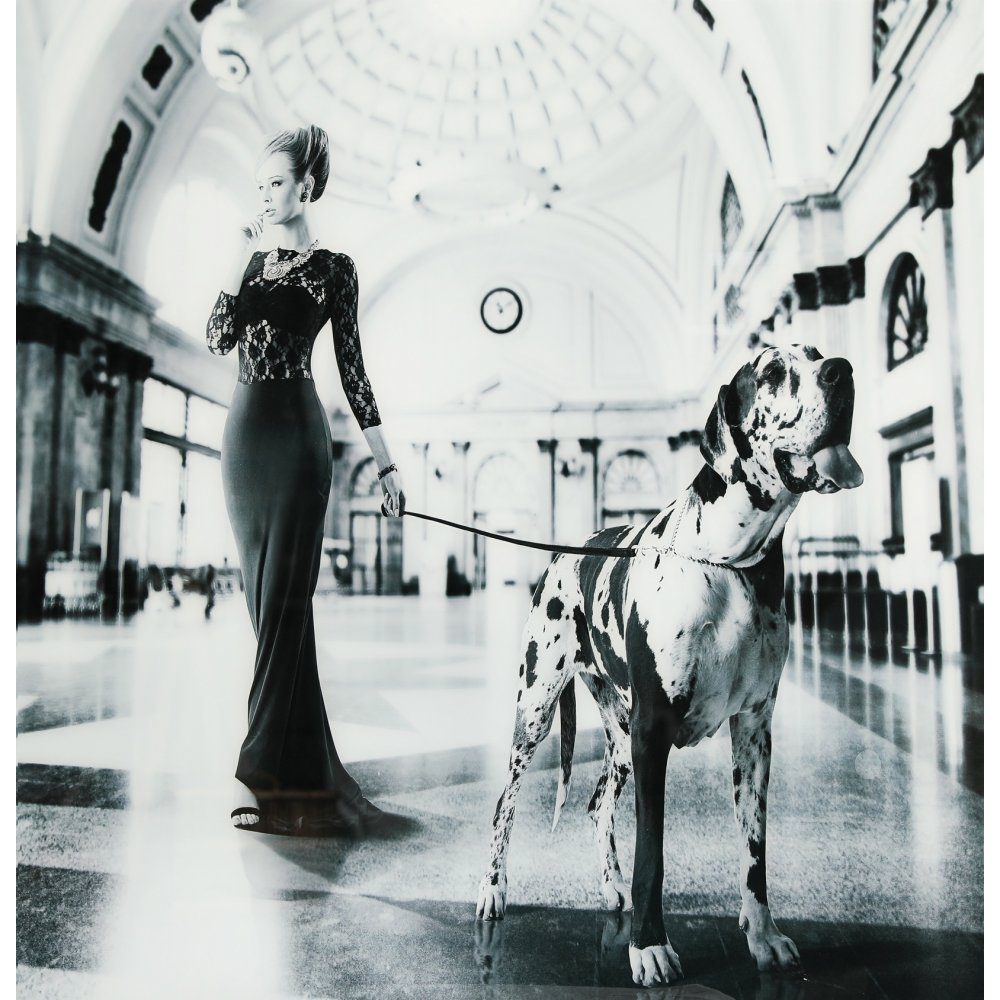 Glassmaling - Kvinne med hund - 120x120 cm
