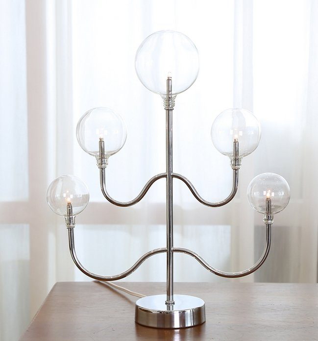 Globe bordlampe i krom med glasskuler.