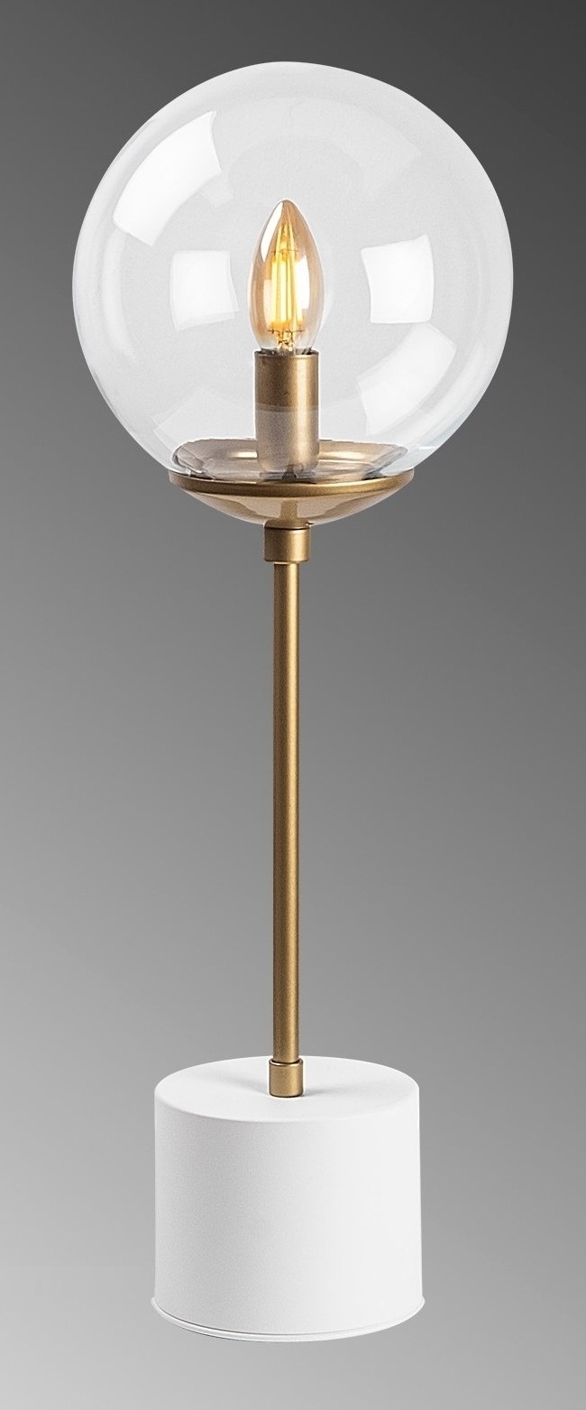 Bordlampe i metall og glass. Lyskilde ikke inkludert.