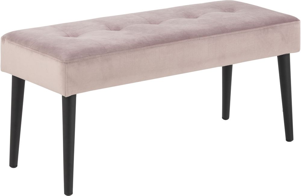 Benk kledd med et behagelig fløyelsstoff og ramme laget av svart pulverlakkert metall.