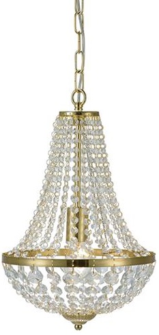 Krystallkrone Gränsö med dens elegante design. Rammen er produsert i messingfarget metall med vakre maskinslipte prismer. 1,5 meter kjede med takoppheng for krokopphenging. Jordet forbindelse. Stor lampeholder (E27). Max 60W glødelampe eller tilsvarende styrke i halogen, lavenergi eller LED. Lampen monteres lett på plass og passer perfekt inn i flere ulike miljøer.