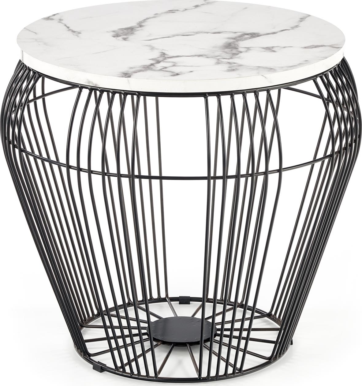 Grande salongbord Ø56 cm - Hvit marmor/svart