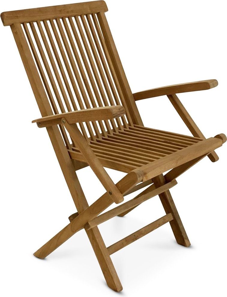Stol med armlene, laget av solid teak. Klassisk teakstol. Stolen er sammenleggbar for enkel oppbevaring når stolen ikke er i bruk.