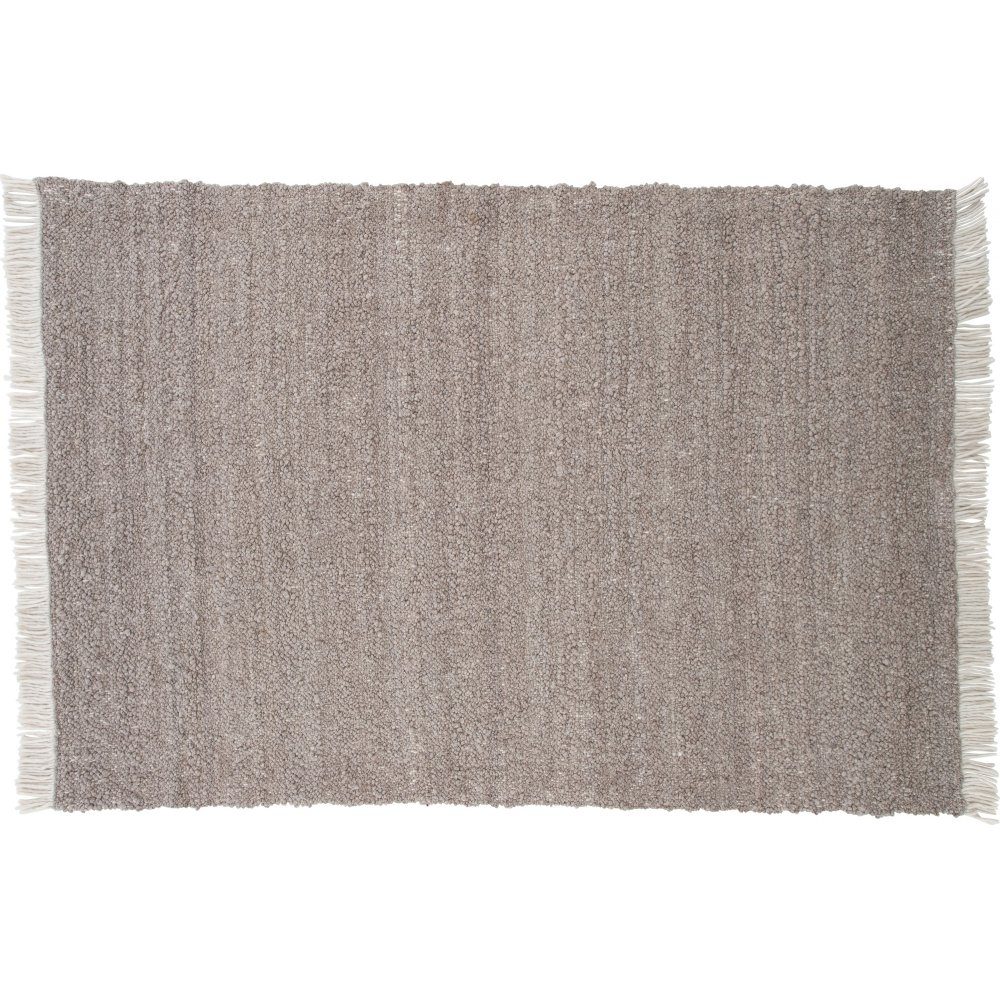 Ullteppe som er håndvevd med en teknikk som gir teppet en nydelig knutestruktur. Fargen er stilig jordaktig i brun fargetone med en benhvit frynserad på kortsidene.