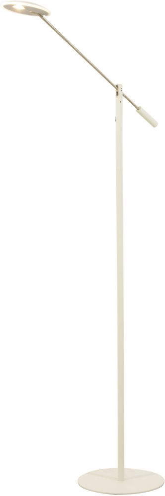 Gulvlampe i hvitt metall med detaljer i krom. Strømbryter på stammen.