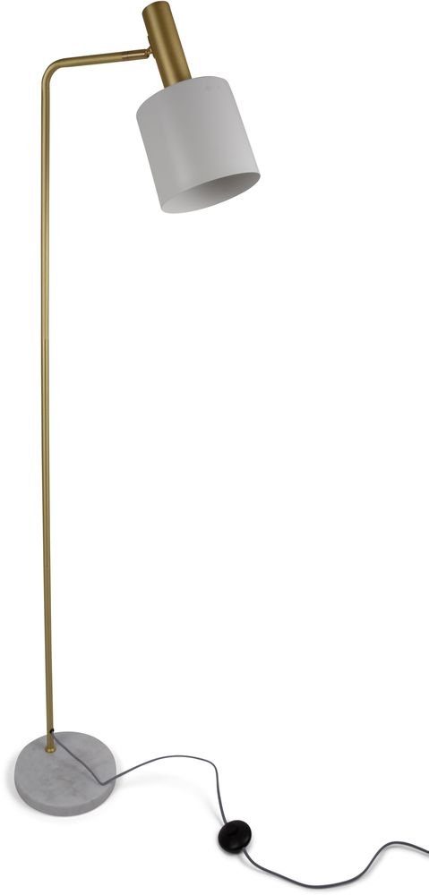 En pen gulvlampe med en tidløs design. Herlig lysegrå marmor hvit med søt metall hals og hvit metallskjerm.