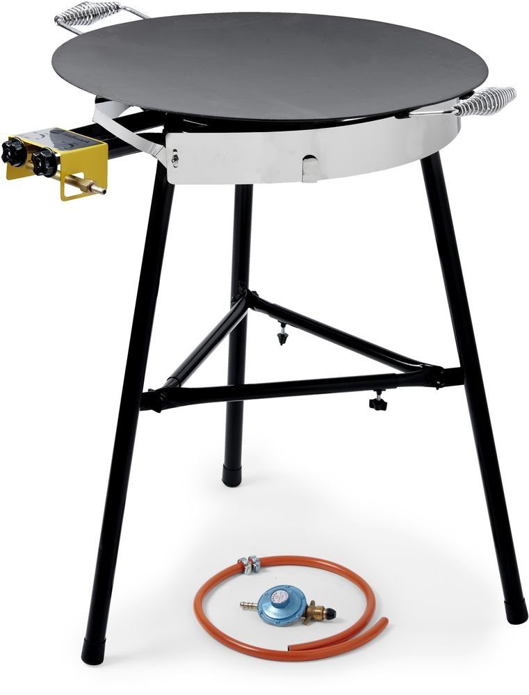 Gass-drevet stekepanne, brenner på 40 cm og stekepanne på 58 cm. LPG-tilkobling tilpasset svensk standard. Regulatorsett og frontrute inkludert.
