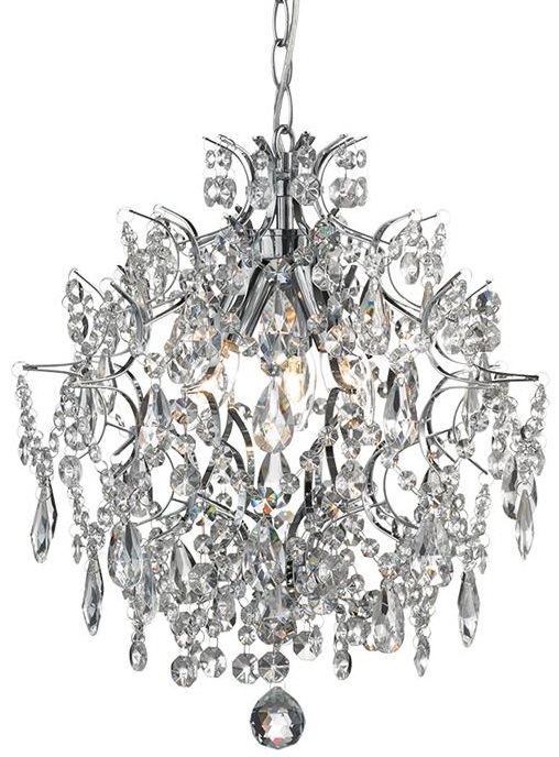 Krystallkrone Häringe med en vakker design. Tilvirket i forkrommet metall med mange vakre maskinslipte prismer. 1,5 meter kjede med sladd, oppheng i takkrok og anslutning til stikkontakt (Sikkerhetstiltak 1). 3x E14 sokkel for maks effekt på 40W. Lampen monteres lett på plass og passer perfekt inn på flere ulike steder i hjemmet.