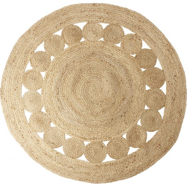 Håndlaget teppe i naturmaterialet Jute! Vakkert mønster, 150 cm i diameter.