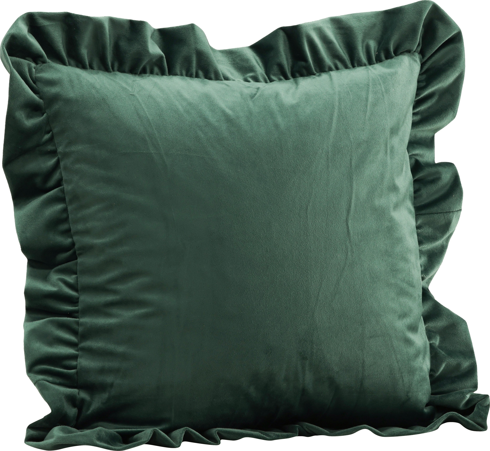 Putetrekk i skoggrønn farge som raskt skaper et elegant og personlig blikkfang i hjemmet ditt. Putetrekket er innrammet av en dekorativ rynkekant og har skjult glidelås bak. Det myke fløyelsstoffet gir en deilig glans til puten, som gjør at den smakfulle grønnfargen fremheves på beste måte.