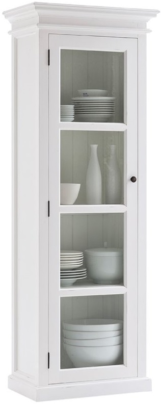 Vår Halifax serie er en av våre største serier i klassisk stil. Velarbeidede detaljer med massivt hvitlakkert tre. Vitrineskapet har tre stykk hyller bak glassdøren.