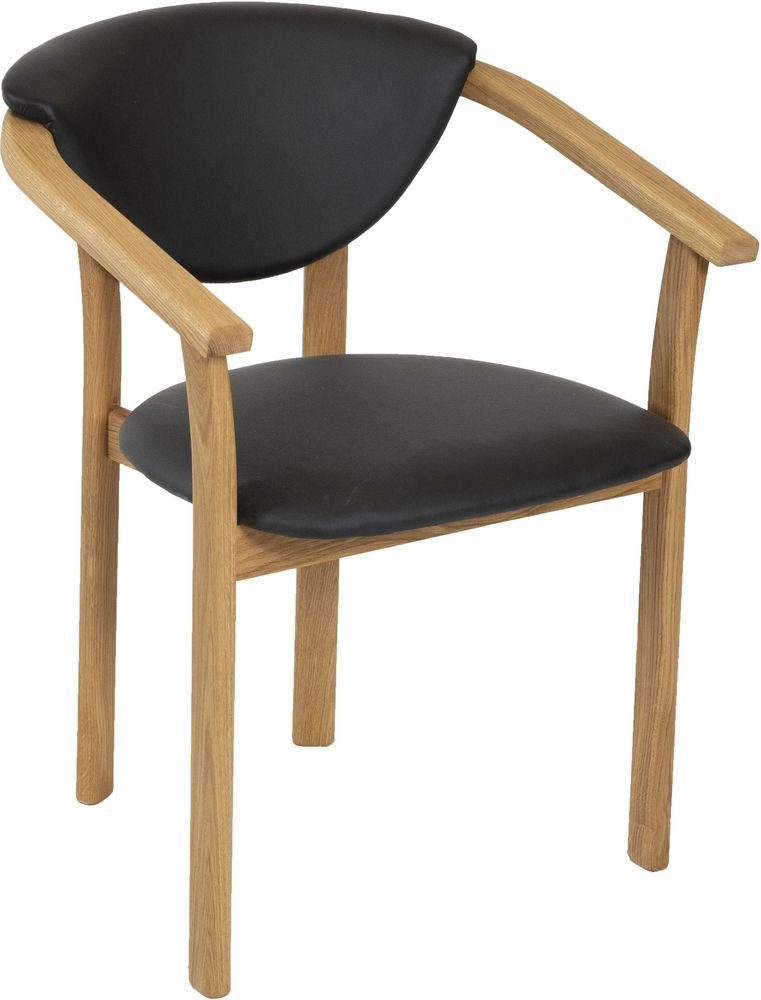 Karmstol i oljet eik, sete av svart PU.