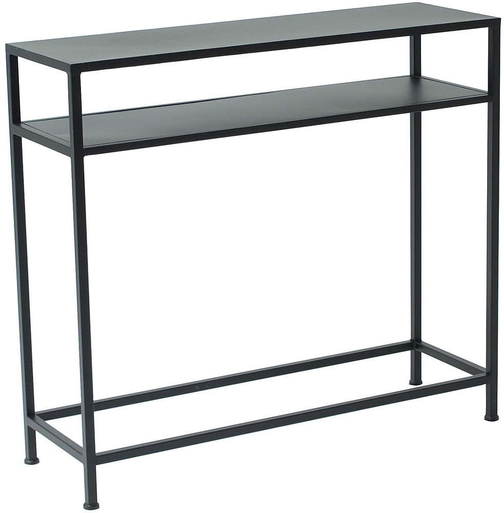 Nett konsollbord i svart blikk med en praktisk hylle på undersiden.