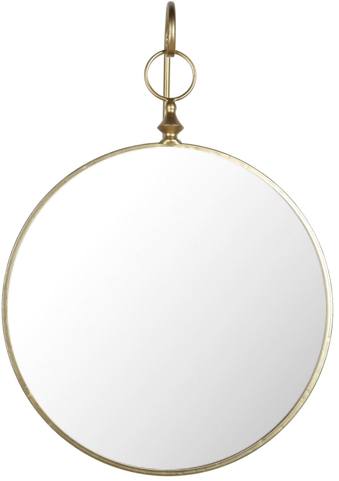 Hengende speil i antikk messing utførelse. Veggkrok inngår som holder speilet.
