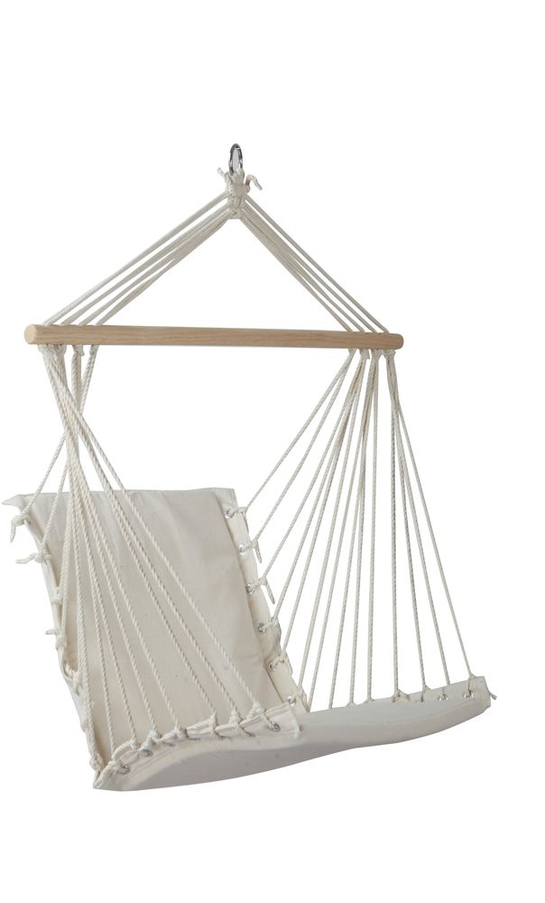 En koselig og stilren hengestol som lett monteres på plass. Sitsen er tilvirket av polyester som er foret med bomull, som henger i et flertall rep.