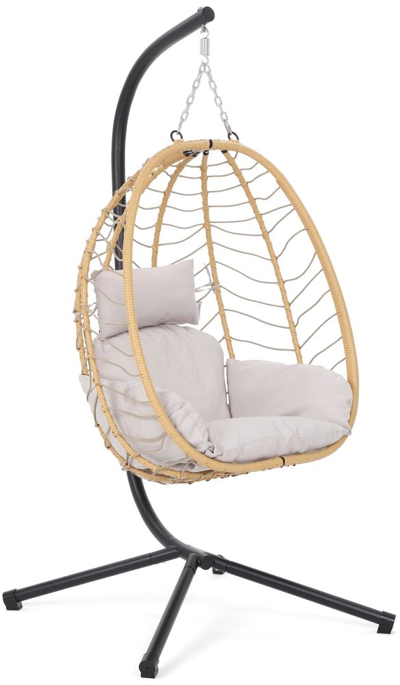 Fin hengestol i kunstrotting og stativ i pulverlakkert stål. Puter er inkludert. Maks 100 kg belastning.