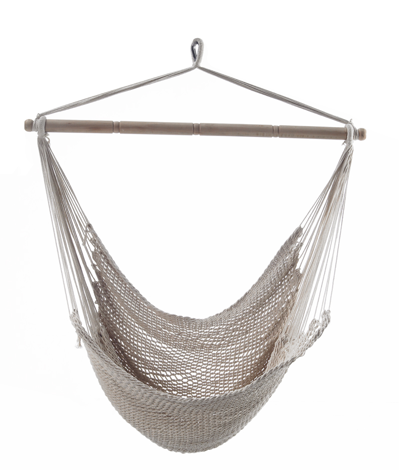 En koselig og stilren hengestol som enkelt kan monteres på plass. Setet er laget av ubleket ufarget bomull. Opphengt i en eikestav.
