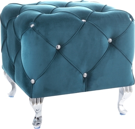 Sittepuff i metall. Polstret med polyesterstoff i fløyelsimitasjon.